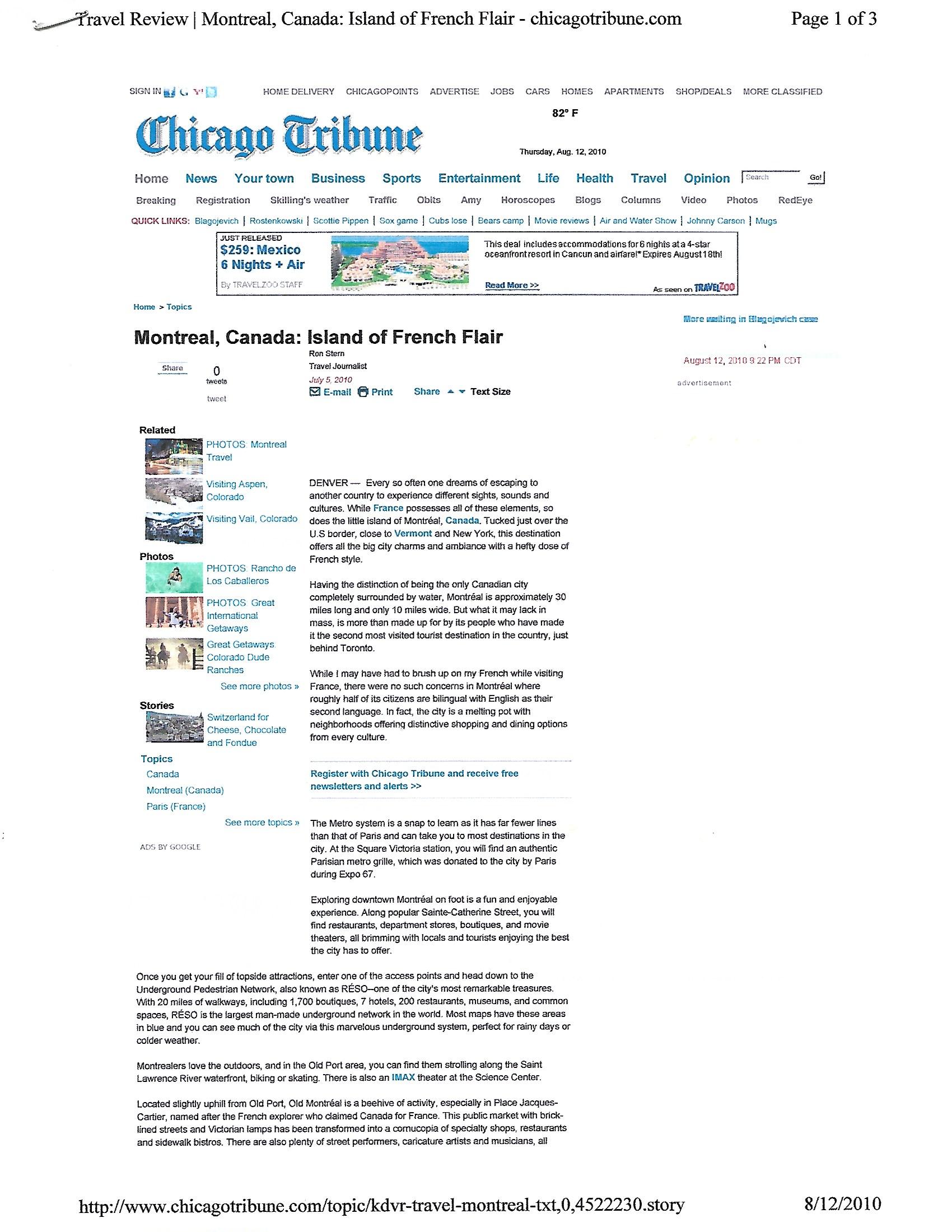 Article about Montreal, Canada. Published online 8/12/10