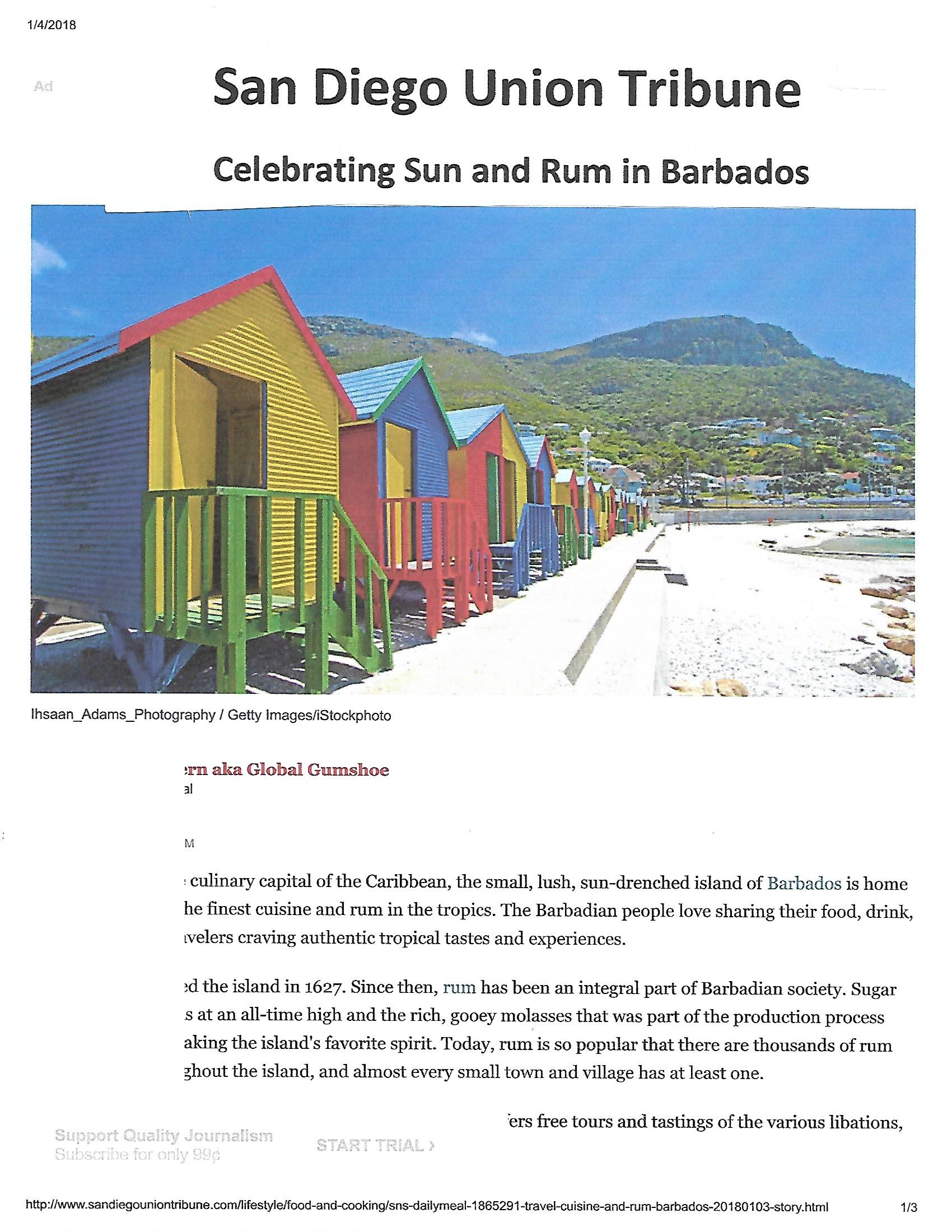Article I wrote about Barbados for San Diego Union Tribune online 1/4/2018