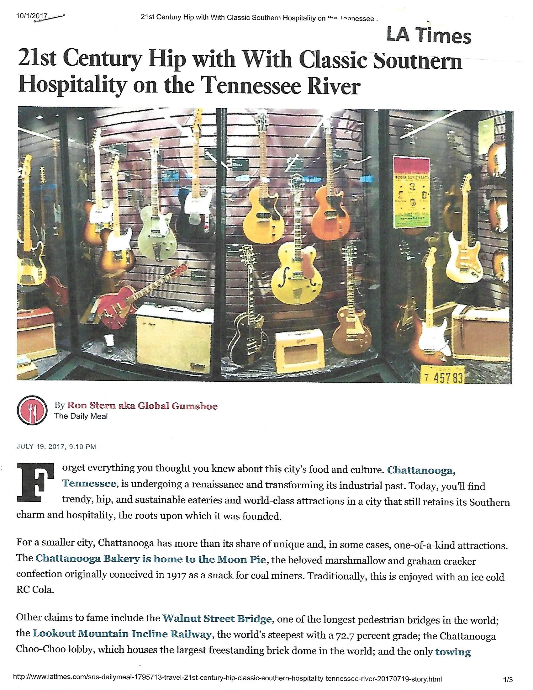 LA Times online: Article about the many attractions in and around Chattanooga, TN. Published 10/1/17